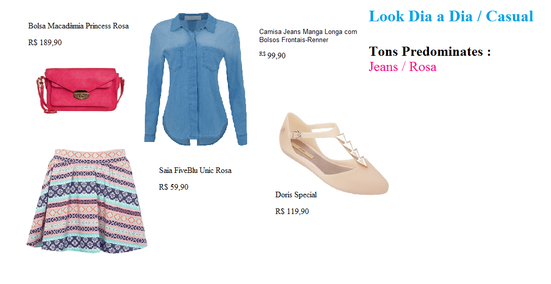 Este look é bem dia ,ele vem com uma saia de estampa étnica e camisa jeans que são hit's da estação .